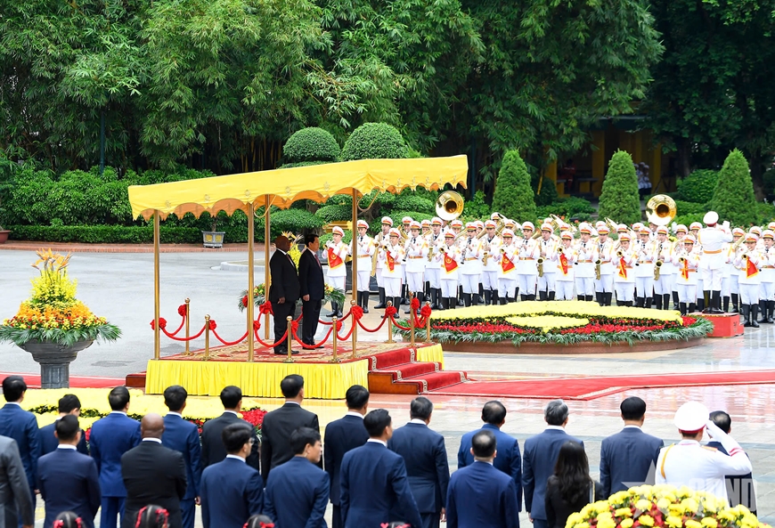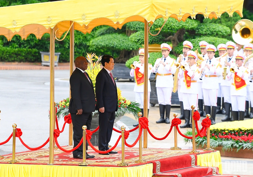 Chủ tịch nước Lương Cường và Tổng thống Matamela Cyril Ramaphosa duyệt Đội Danh dự Quân đội nhân dân Việt Nam.