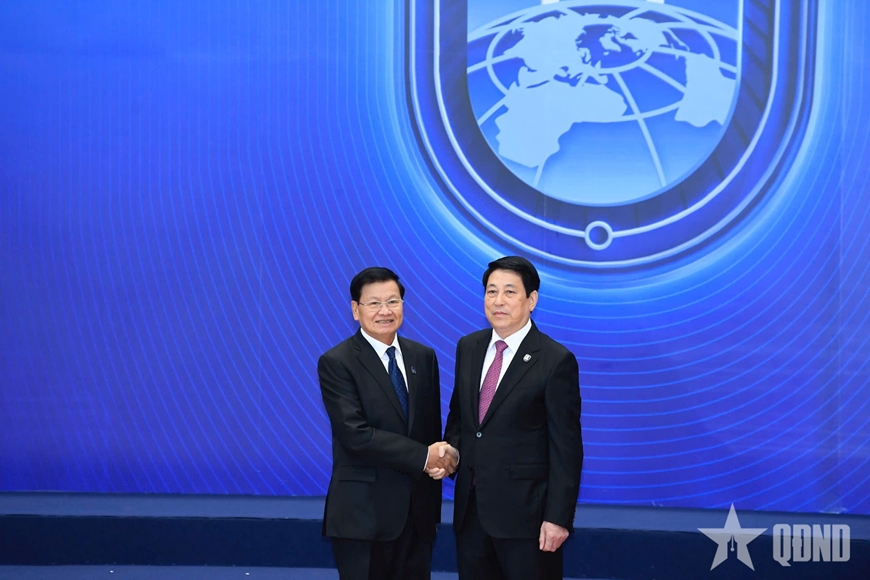 Chủ tịch nước Lương Cường và Tổng Bí thư, Chủ tịch nước Lào Thongloun Sisoulith tại Lễ mở ký Công ước Hà Nội.
