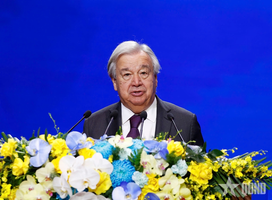 | Tổng thư ký Liên hợp quốc António Guterres phát biểu tại khai mạc Lễ mở ký Công ước Hà Nội. |