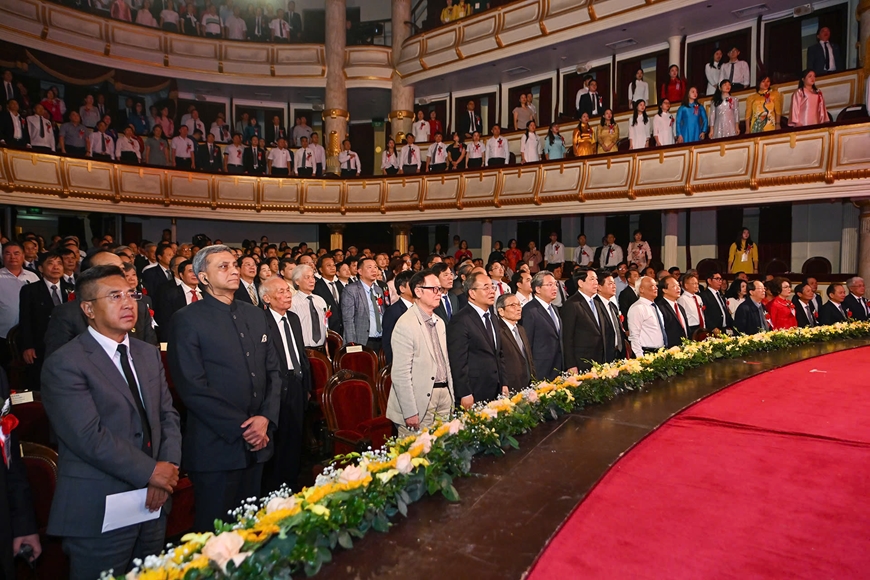 Chủ tịch nước Lương Cường và các đại biểu dự lễ kỷ niệm. |
