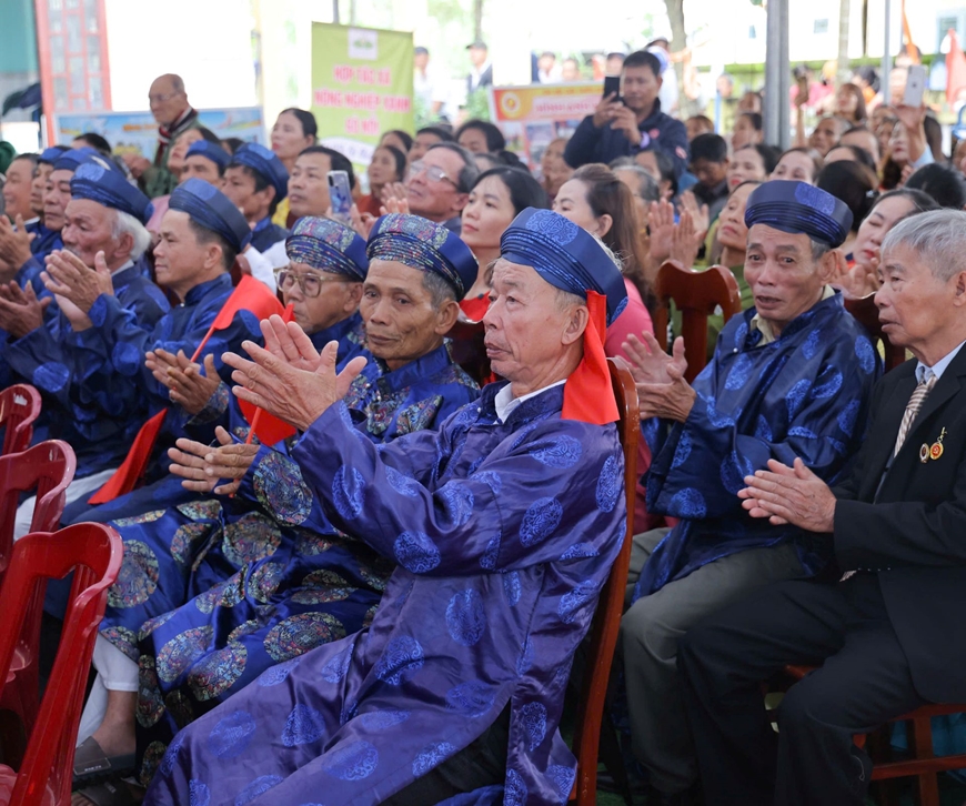 | Các cụ cao tuổi và nhân dân thôn Bảo An dự Ngày hội Đại đoàn kết toàn dân tộc. |