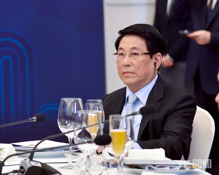 | Chủ tịch nước Lương Cường dự buổi chiêu đãi. |