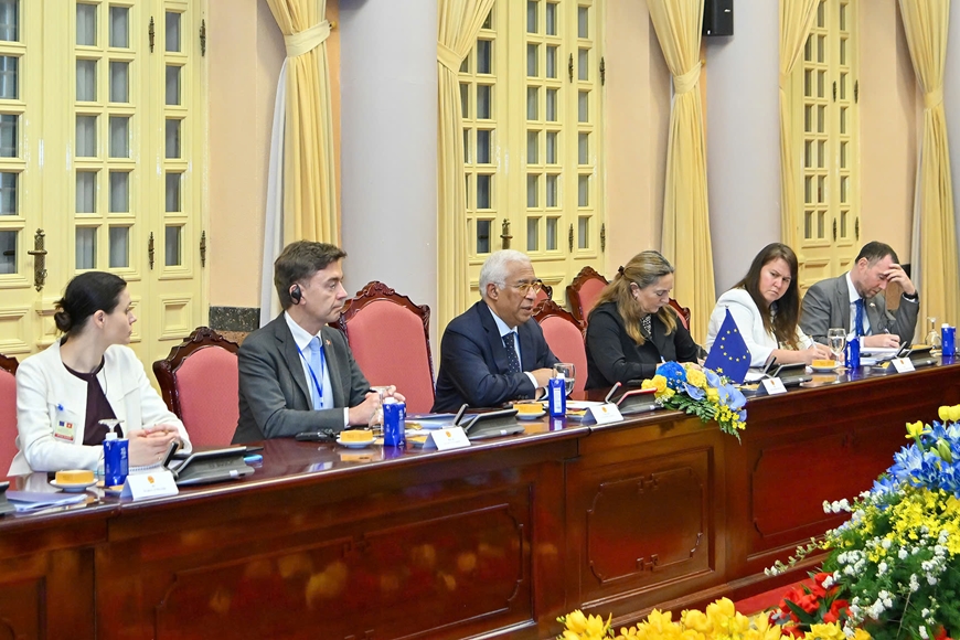 Chúc mừng vai trò, vị thế và uy tín quốc tế ngày càng cao của Việt Nam, Chủ tịch Hội đồng châu Âu khẳng định EU coi Việt Nam là đối tác quan trọng tại khu vực ASEAN và trong Chiến lược Ấn Độ Dương – Thái Bình Dương, là đối tác chia sẻ điểm đồng với EU về tôn trọng luật pháp quốc tế, ủng hộ thương mại tự do, tự do hàng hải. Chủ tịch Antonio Costa khẳng định chuyến thăm của ông là thời khắc lịch sử với việc hai bên nâng cấp quan hệ lên mức độ mới, Việt Nam là đối tác chiến lược toàn diện đầu tiên của của EU trong ASEAN, thể hiện không chỉ chiều dài chặng đường 35 năm mà còn là sự gần gũi, sát cánh về tầm nhìn xa trong bối cảnh một thế giới khó đoán định như hiện nay.