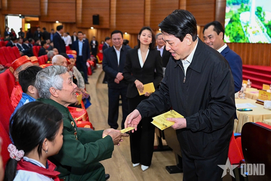 Nhân dịp này, Chủ tịch nước Lương Cường trao quà mừng tuổi các bậc cao niên, lão thành cách mạng, đại diện gia đình chính sách, học sinh, sinh viên, lực lượng vũ trang và đại diện nhân dân trong tỉnh.