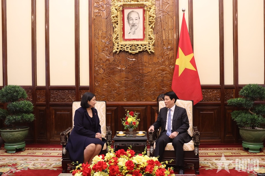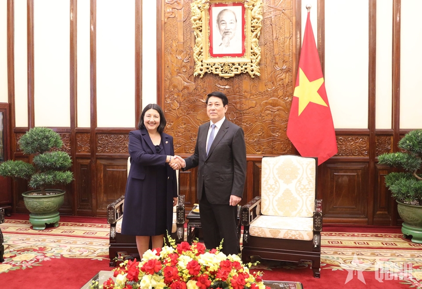 Chủ tịch nước Lương Cường tiếp Đại sứ Cộng hòa Chile Nasly Isabel Bernal Prado.