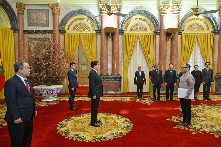 Chủ tịch nước Lương Cường nhận Quốc thư từ Đại sứ Indonesia Adam Mulawarman Tugio.