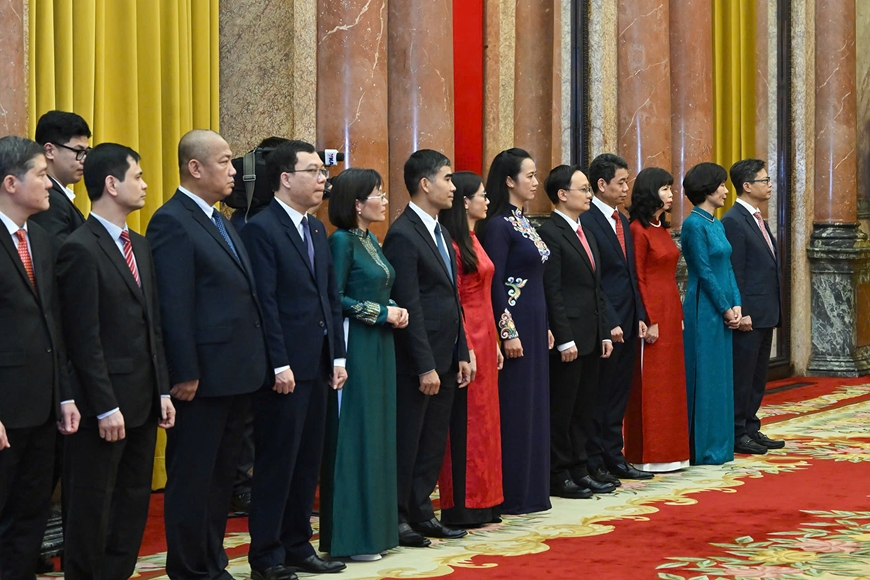 Tại buổi lễ, thừa ủy quyền của Chủ tịch nước, Phó chủ nhiệm Văn phòng Chủ tịch nước Nguyễn Hoàng Anh công bố quyết định của Chủ tịch nước bổ nhiệm 16 Đại sứ đặc mệnh toàn quyền nước Cộng hòa xã hội chủ nghĩa Việt Nam tại các nước.