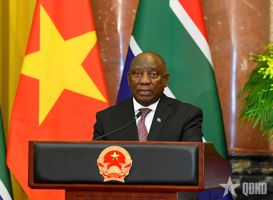 Tổng thống Matamela Cyril Ramaphosa nhấn mạnh, quan hệ Nam Phi - Việt Nam không ngừng được mở rộng trên nhiều lĩnh vực, từ chính trị, kinh tế, thương mại, đầu tư đến khoa học - công nghệ, giáo dục, quốc phòng, nông nghiệp, tư pháp và bảo tồn đa dạng sinh học; hai nước đang hướng tới nâng cấp quan hệ song phương lên quan hệ đối tác chiến lược, thể hiện cam kết chung tăng cường hợp tác toàn diện.
