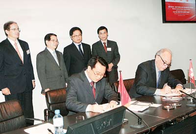 | Chủ tịch nước Nguyễn Minh Triết chứng kiến lễ ký các hợp đồng kinh tế giữa các doanh nghiệp hai nước. |
