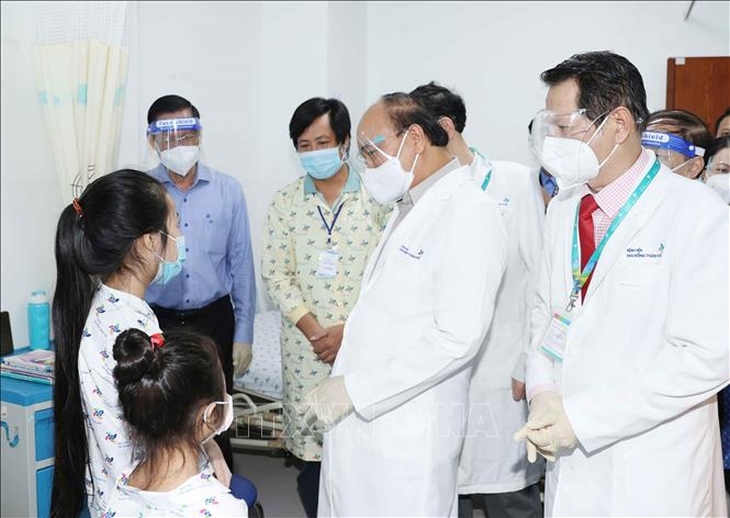 Tham quan cơ sở điều trị, hỏi thăm tình hình hình khám chữa bệnh của đội ngũ y, bác sĩ và bệnh nhân, Chủ tịch nước Nguyễn Xuân Phúc vui mừng chứng kiến hệ thống trang thiết bị hiện đại, môi trường sạch sẽ, nền nếp chuyên môn quy chuẩn của Bệnh viện Nhi đồng thành phố.