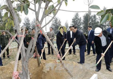 Chủ tịch nước Trần Đại Quang dự Lễ phát động Tết trồng cây “Đời đời nhớ ơn Bác Hồ” xuân Đinh Dậu 2017 tại tỉnh Quảng Ninh. Ảnh: Nhan Sáng/TTXVN.