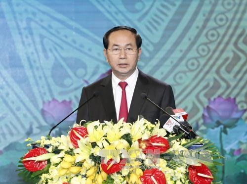 Thay mặt Lãnh đạo Đảng, Nhà nước, Chủ tịch nước Trần Đại Quang đã về dự và có bài phát biểu tại Lễ kỷ niệm.