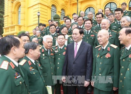 Chủ tịch nước Trần Đại Quang với các đại biểu tại buổi gặp mặt. Ảnh: Nhan Sáng-TTXVN.