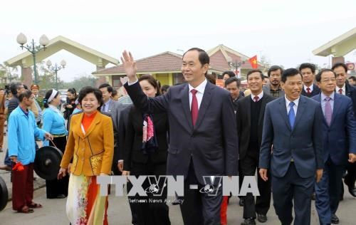 Thay mặt lãnh đạo Đảng, Nhà nước, Chủ tịch nước Trần Đại Quang tới tham dự các hoạt động văn hóa, chúc Tết cộng đồng các dân tộc Việt Nam.