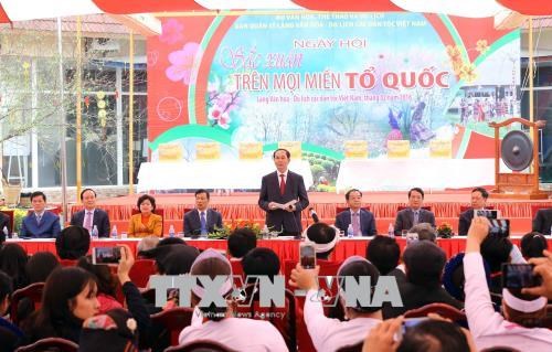 Chủ tịch nước Trần Đại Quang đánh giá cao Bộ Văn hóa, Thể thao và Du lịch, Ban Quản lý Làng Văn hóa - Du lịch các dân tộc Việt Nam và đồng bào các dân tộc hoạt động tại Làng đã có nhiều nỗ lực, góp phần vào công cuộc bảo tồn, phát triển văn hóa, khẳng định sức sống trường tồn của các giá trị văn hóa truyền thống dân tộc, từng bước đưa Làng trở thành điểm đến du lịch. Đặc biệt, Ngày hội “Sắc Xuân trên mọi miền Tổ quốc” qua các năm tổ chức đã đón hàng chục nghìn lượt đồng bào các dân tộc tham gia hơn 50 lễ hội, hoạt động. Đây là điểm hội tụ, lan tỏa truyền thống văn hóa, nhất là vào dịp Tết cổ truyền của dân tộc.