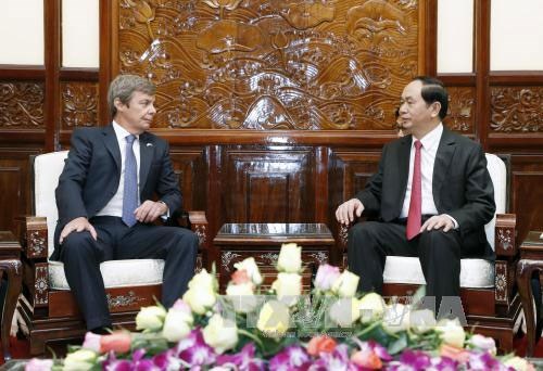 Chủ tịch nước Trần Đại Quang tiếp Ngài Juan Carlos Valle Raleigh, Đại sứ Đặc mệnh toàn quyền Cộng hoà Argentina tại Việt Nam đến trình Quốc thư. Ảnh: Nhan Sáng-TTXVN