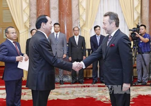 Chủ tịch nước Trần Đại Quang tiếp Ngài Vitezslav Grepl, Đại sứ Đặc mệnh toàn quyền Cộng hoà Czech tại Việt Nam đến trình Quốc thư. Ảnh: Nhan Sáng-TTXVN