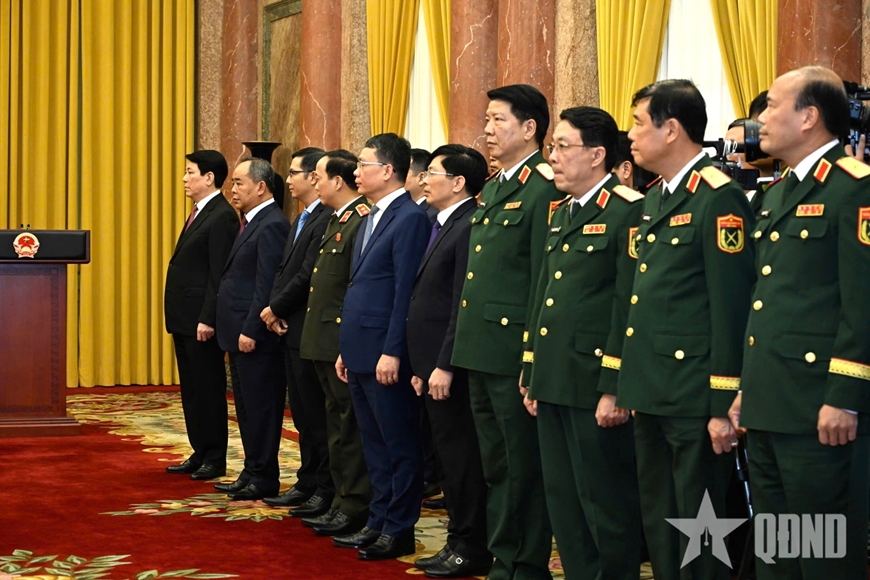 Trong bối cảnh đó, Chủ tịch nước yêu cầu các đồng chí vừa được thăng quân hàm tiếp tục phát huy truyền thống vẻ vang của QĐND anh hùng; giữ gìn phẩm chất đạo đức cách mạng; đoàn kết, gắn bó máu thịt với cán bộ, chiến sĩ và nhân dân; học tập, tu dưỡng, rèn luyện để luôn xứng đáng với đạo làm Tướng như Bác Hồ kính yêu đã dạy; và là người lãnh đạo, chỉ huy tài năng, mẫu mực, đoàn kết, nỗ lực phấn đấu, khắc phục khó khăn, thử thách, hoàn thành xuất sắc mọi nhiệm vụ mà Đảng, Nhà nước và nhân dân tin tưởng giao phó.