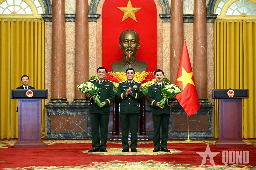 Chủ tịch nước đánh giá, hai đồng chí đều là những cán bộ ưu tú của Đảng, Nhà nước, của Quân đội nhân dân (QĐND) Việt Nam; đều được đào tạo cơ bản, có hệ thống, trưởng thành từ đơn vị, cơ sở; được rèn luyện, thử thách qua rất nhiều cương vị, lĩnh vực, môi trường công tác; dù trong bất cứ điều kiện, hoàn cảnh nào, luôn thể hiện là những cán bộ có bản lĩnh chính trị vững vàng; phẩm chất đạo đức cách mạng trong sáng; gương mẫu, tận tụy, trách nhiệm trong sự nghiệp xây dựng và bảo vệ Tổ quốc.