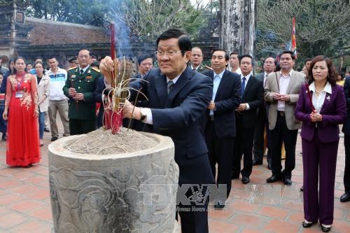 Chủ tịch nước Trương Tấn Sang đến dâng hoa, thắp hương và thăm Khu di tích lịch sử Đền thờ Vua Đinh Tiên Hoàng.