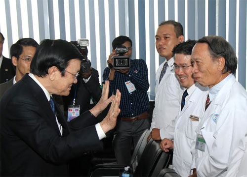 Chủ tịch nước Trương Tấn Sang thăm hỏi các y bác sĩ tại Bệnh viện Chợ Rẫy Phnom Penh.