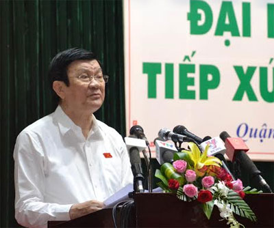 | Chủ tịch nước Trương Tấn Sang phát biểu tại buổi tiếp xúc cử tri. |