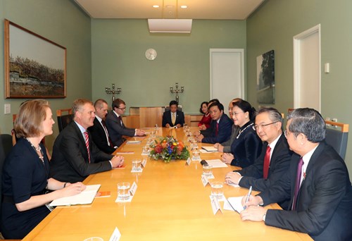Thông báo với hai ngài Chủ tịch một số nét về tình hình kinh tế-xã hội và chính sách đối ngoại của Việt Nam, Chủ tịch Quốc hội Nguyễn Thị Kim Ngân cho biết, Việt Nam tiếp tục phương châm ưu tiên phát triển quan hệ hợp tác và hữu nghị với các nước, đồng thời nỗ lực làm sâu sắc hơn nữa quan hệ với các đối tác chủ chốt, trong đó có Australia.