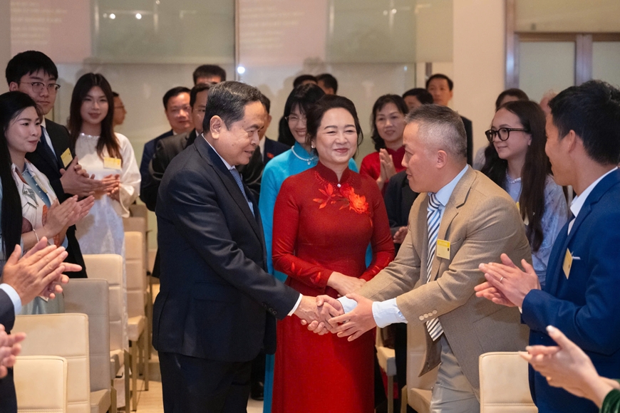 Chủ tịch Quốc hội nhấn mạnh, Đảng, Nhà nước luôn dành sự quan tâm sâu sắc đối với cộng đồng người Việt Nam ở nước ngoài. Trong khoảng 2 năm qua, Quốc hội đã ban hành nhiều đạo luật quan trọng như Luật Quốc tịch, Luật Căn cước, Luật Đất đai, Luật Nhà ở, Luật Kinh doanh bất động sản; gần đây tiếp tục sửa đổi, hoàn thiện các quy định liên quan đến khoa học công nghệ, đổi mới sáng tạo và trí tuệ nhân tạo. Chủ tịch Quốc hội cho biết, hiện trên thế giới chỉ có gần 10 quốc gia ban hành được luật về trí tuệ nhân tạo và Việt Nam là một trong số đó.