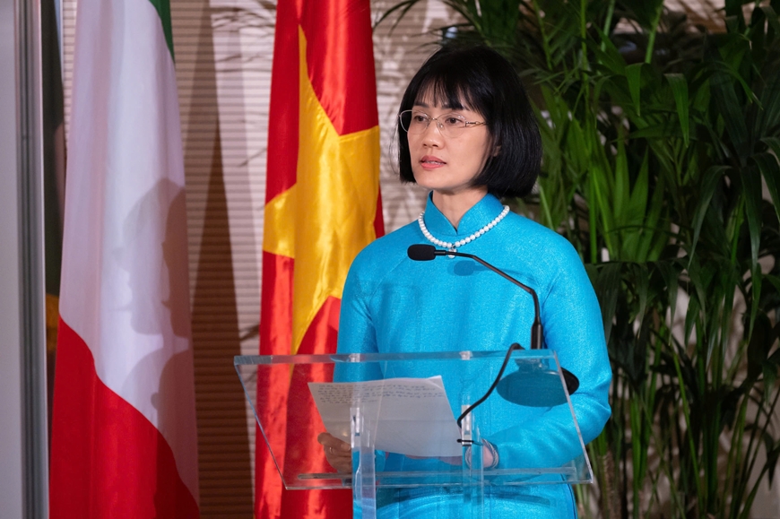 | Đại sứ Việt Nam tại Italy Nguyễn Phương Anh phát biểu tại cuộc gặp. |