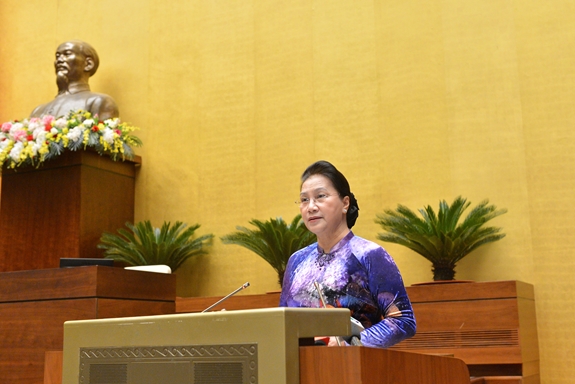 Chủ tịch Quốc hội phát biểu tại cuộc gặp mặt. |