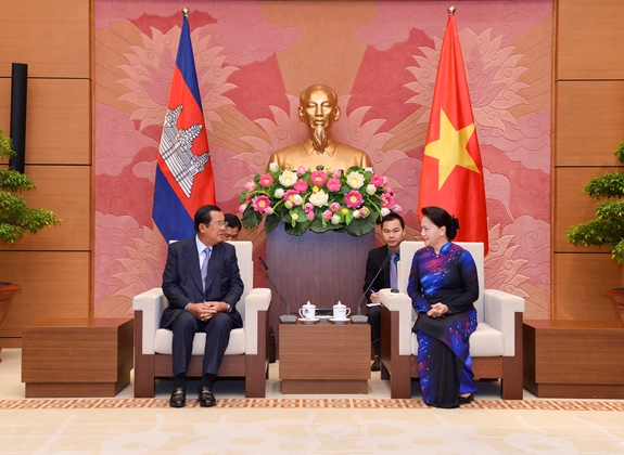 Chủ tịch Quốc hội Nguyễn Thị Kim Ngân và Thủ tướng Samdech Akka Moha Sena Padei Techo Hun Sen tại buổi hội kiến.