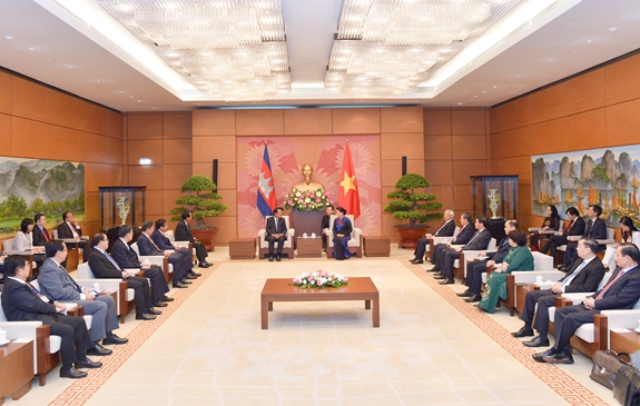 Chủ tịch Quốc hội Nguyễn Thị Kim Ngân và Thủ tướng Chính phủ Hoàng gia Campuchia tại Nhà Quốc hội Việt Nam.