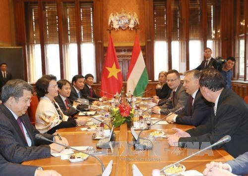 Chủ tịch Quốc hội Nguyễn Thị Kim Ngân hội kiến với Thủ tướng Hungary Viktor Orban. Ảnh: TTXVN