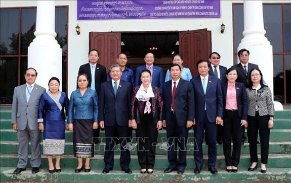 Chủ tịch Quốc hội Nguyễn Thị Kim Ngân cùng các đại biểu và lãnh đạo tỉnh Viêng Chăn (Lào). |