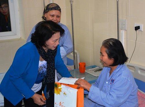 Chủ tịch Quốc hội Nguyễn Thị Kim Ngân tặng quà và thăm hỏi người bệnh đang điều trị tại Bệnh viện K Trung ương.