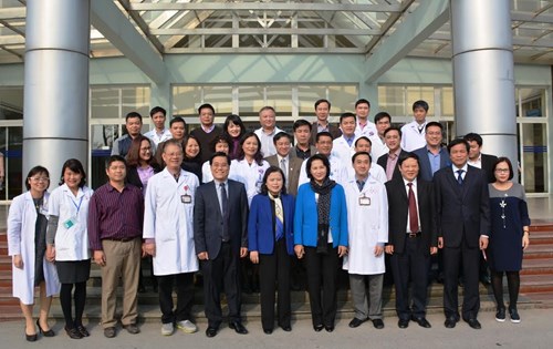 Chủ tịch Quốc hội Nguyễn Thị Kim Ngân chụp ảnh lưu niệm cùng cán bộ, nhân viên, y-bác sĩ Bệnh viện K Trung ương.