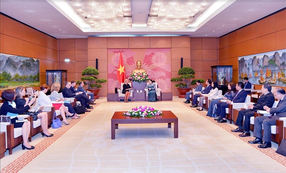 Tại cuộc tiếp, Chủ tịch Quốc hội Nguyễn Thị Kim Ngân hoan nghênh những bước tiến mới trong quan hệ hợp tác toàn diện Việt Nam – EU. Hai bên vừa chính thức ký kết Hiệp định thương mại tự do (EVFTA) và Hiệp định Bảo hộ đầu tư (EVIPA); triển khai các cơ chế hợp tác như Ủy ban hỗn hợp nhằm thực hiện Hiệp định Đối tác và Hợp tác toàn diện Việt Nam – EU (PCA); phê chuẩn và đưa triển khai ngay sau khi có hiệu lực Hiệp định Đối tác tự nguyện về thực thi Luật Lâm nghiệp, quản trị rừng và thương mại lâm sản (VPA/FLEGT). Nhân dịp này, Chủ tịch Quốc hội bày tỏ mong muốn, Nghị viện châu Âu sớm thúc đẩy để phê chuẩn các hiệp định EVFTA, EVIPA mà hai bên vừa ký kết. Quốc hội Việt Nam đang yêu cầu Chính phủ hoàn tất các thủ tục để Quốc hội phê chuẩn tại kỳ họp tới.
