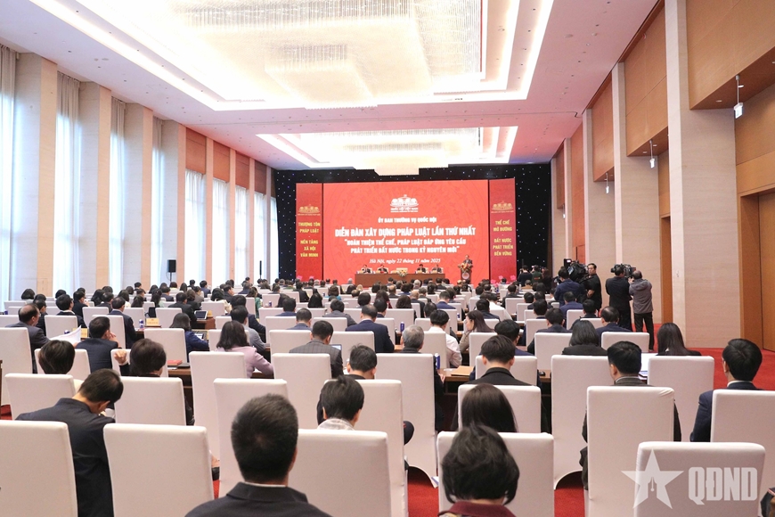 Phát biểu khai mạc diễn đàn, Chủ tịch Quốc hội Trần Thanh Mẫn nhấn mạnh, việc lần đầu tiên, Diễn đàn xây dựng pháp luật được tổ chức cùng với việc tổng kết công tác nhiệm kỳ của Quốc hội khóa XV, đây chính là dịp để đánh giá khách quan, toàn diện công tác lập pháp của Quốc hội, từ đó đề xuất các giải pháp nhằm tiếp tục hoàn thiện thể chế, pháp luật đáp ứng yêu cầu phát triển đất nước trong giai đoạn mới.