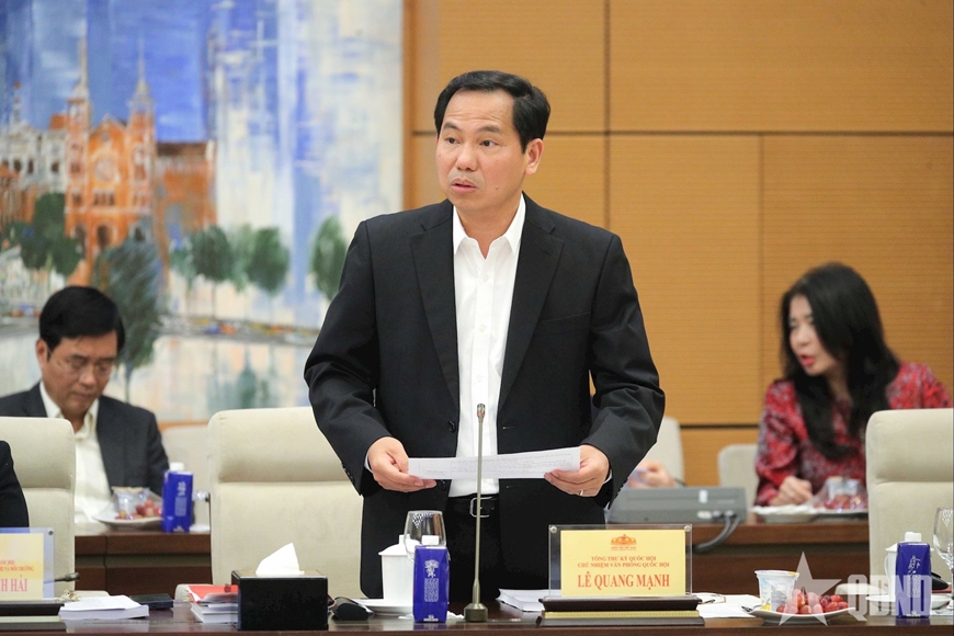 Báo cáo tại phiên họp, Tổng Thư ký Quốc hội, Chủ nhiệm Văn phòng Quốc hội Lê Quang Mạnh cho biết, năm 2025, dưới sự lãnh đạo, chỉ đạo sát sao của Chủ tịch Quốc hội, các Phó chủ tịch Quốc hội, các cơ quan của Quốc hội và Văn phòng Quốc hội đã tập trung, kịp thời, sáng tạo, nỗ lực cao độ, hoàn thành khối lượng công việc vô cùng lớn.