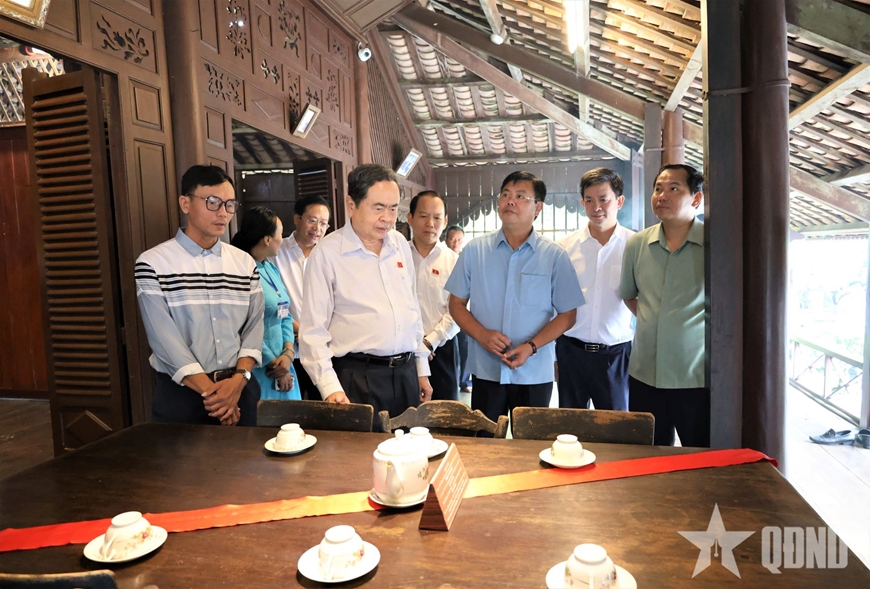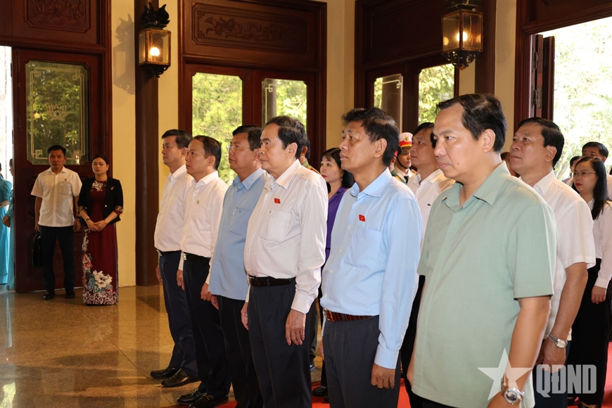 Chủ tịch Quốc hội Trần Thanh Mẫn và đoàn thành kính dâng hương, dâng hoa tưởng nhớ công lao to lớn của Chủ tịch Tôn Đức Thắng - nhà lãnh đạo mẫu mực, người cộng sản kiên trung, tấm gương đạo đức cách mạng sáng ngời, người con ưu tú của quê hương An Giang.
