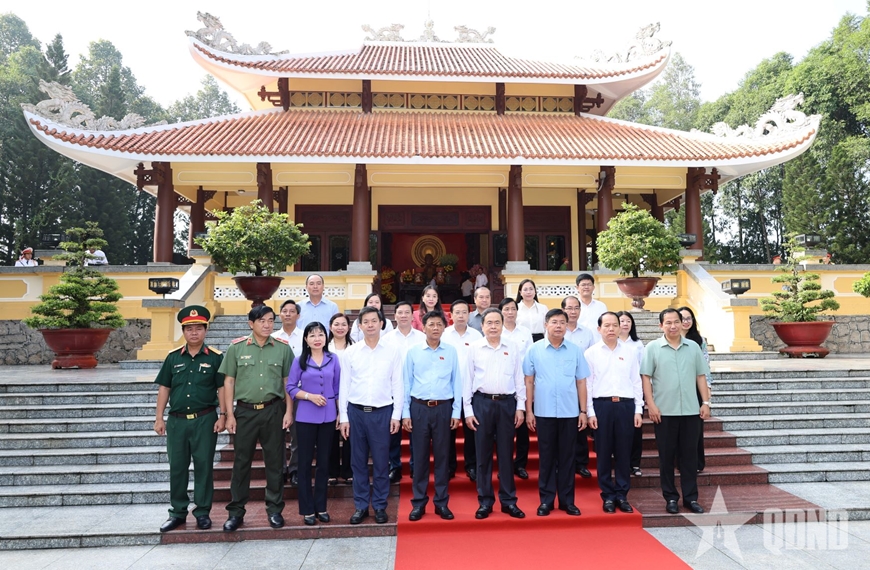 Chủ tịch Quốc hội Trần Thanh Mẫn và các đại biểu tại Khu lưu niệm Chủ tịch Tôn Đức Thắng. Ảnh: HẢI HÀNH |