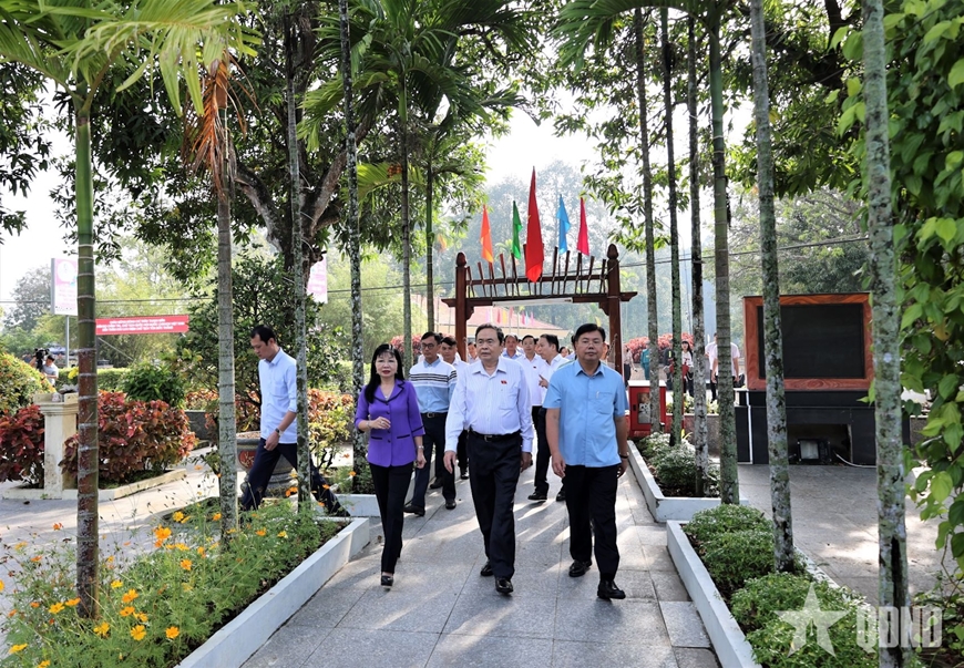 Chủ tịch Quốc hội Trần Thanh Mẫn và các đại biểu tham quan Khu lưu niệm Chủ tịch Tôn Đức Thắng. |