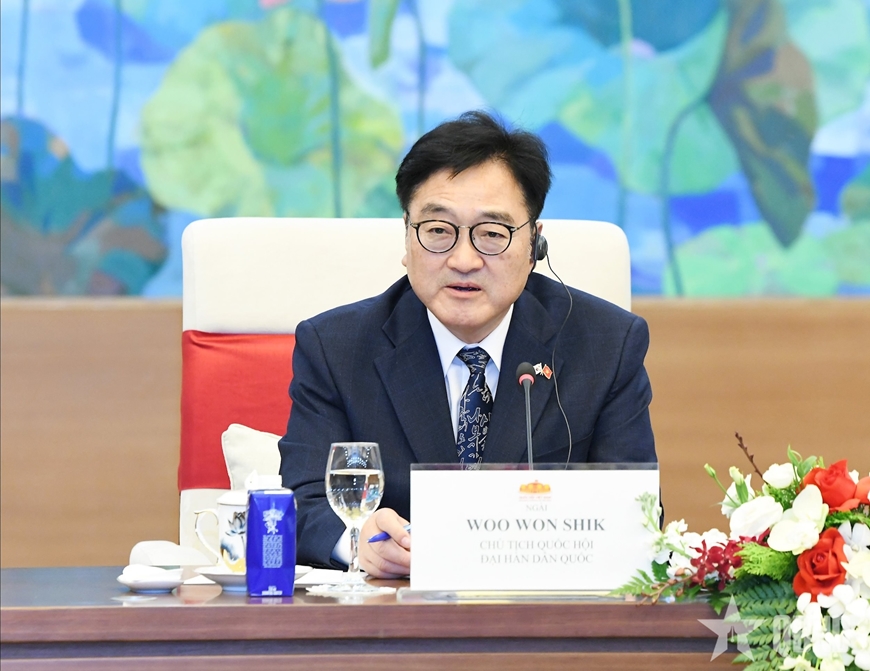 Chủ tịch Quốc hội Woo Won Shik nhấn mạnh Hàn Quốc tiếp tục duy trì vị trí thứ nhất về đầu tư trực tiếp, thứ ba về thương mại của Việt Nam và hai bên đã đạt mốc 5 triệu lượt người thăm nhau trong năm 2024; cho rằng hai bên có nhiều điểm tương đồng về văn hóa, đã trở thành đối tác kinh tế hàng đầu của nhau và có mối quan hệ không thể tách rời.