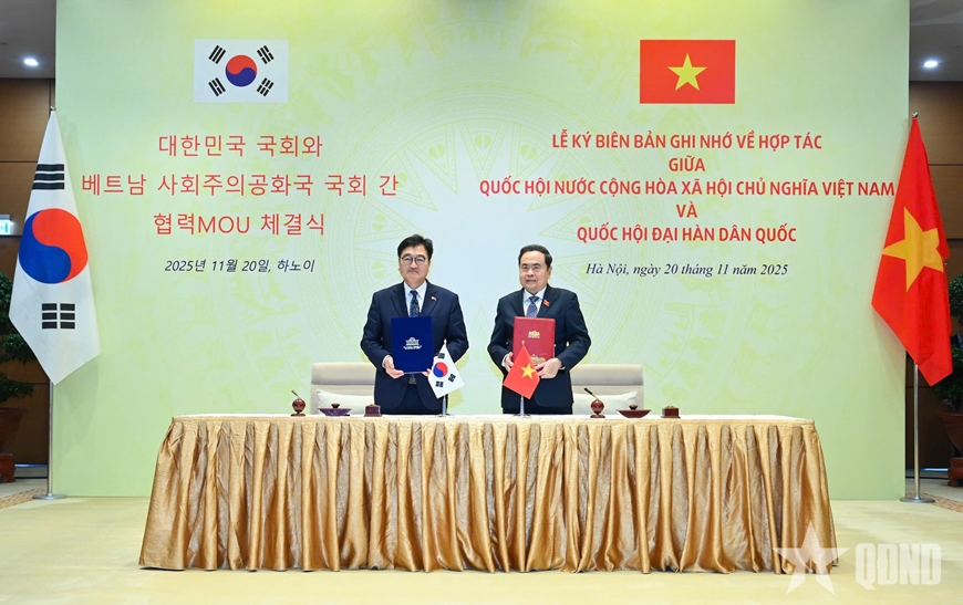 | Chủ tịch Quốc hội Trần Thanh Mẫn và Chủ tịch Quốc hội Hàn Quốc Woo Won Shik ký biên bản ghi nhớ về hợp tác giữa Quốc hội Việt Nam và Quốc hội Đại Hàn Dân Quốc. |