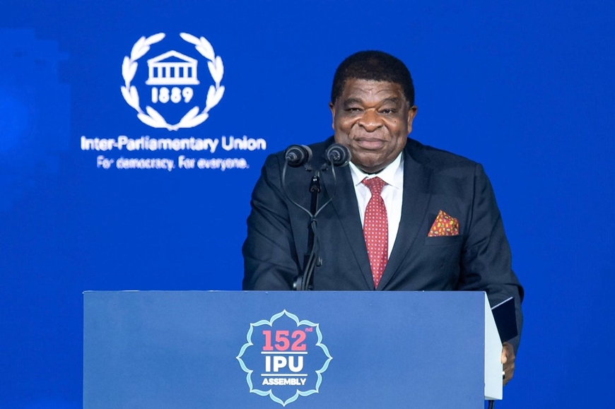 Tổng Thư ký IPU Martin Chungong phát biểu tại phiên khai mạc Đại hội đồng IPU-152. Ảnh: PHẠM THẮNG