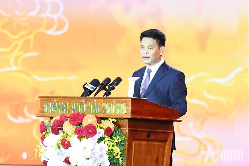 Phó bí thư Thành ủy, Chủ tịch UBND TP Hải Phòng Lê Ngọc Châu phát biểu khai mạc buổi lễ. Ảnh: LÂM HIỂN |