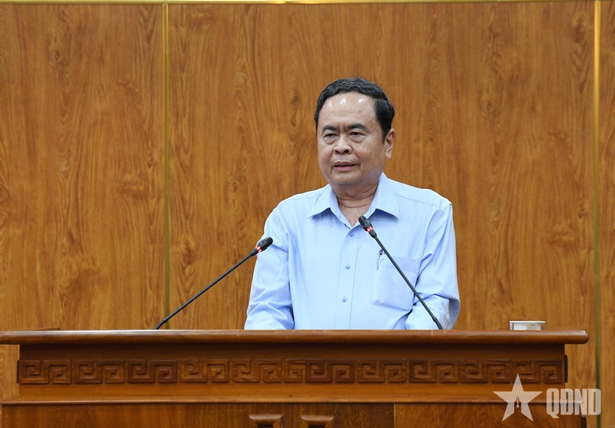 | Chủ tịch Quốc hội Trần Thanh Mẫn phát biểu tại cuộc gặp mặt. Ảnh: LÂM HIỂN |