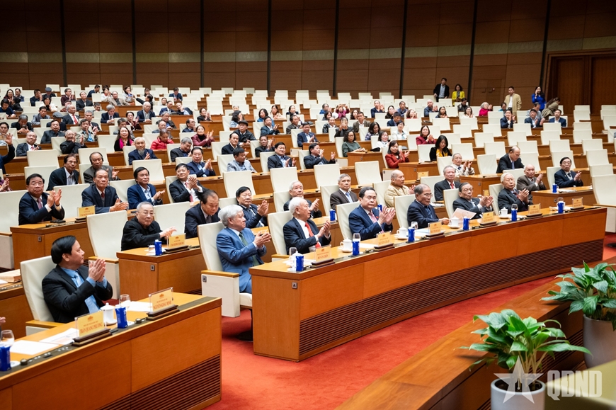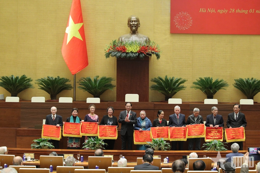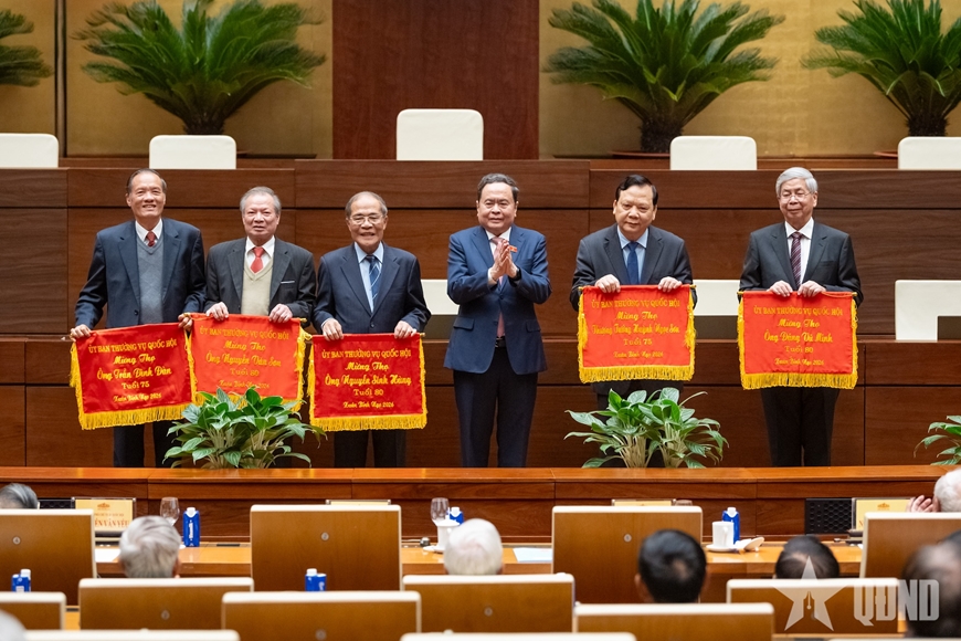 Tại buổi gặp mặt, Chủ tịch Quốc hội Trần Thanh Mẫn cùng các Phó chủ tịch Quốc hội đã trao trướng mừng thọ tới các đồng chí nguyên lãnh đạo Quốc hội, nguyên Ủy viên Ủy ban Thường vụ Quốc hội, nguyên đại biểu Quốc hội chuyên trách và cán bộ hưu trí Văn phòng Quốc hội.