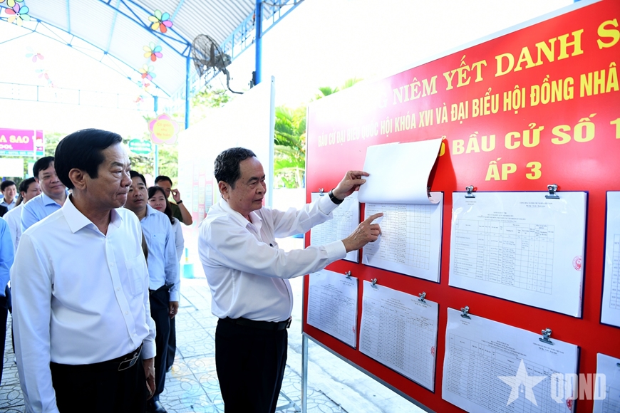 | Chủ tịch Quốc hội Trần Thanh Mẫn kiểm tra công tác bầu cử tại Tổ bầu cử số 10, đơn vị bầu cử số 5, xã Ba Sao, tỉnh Đồng Tháp. |