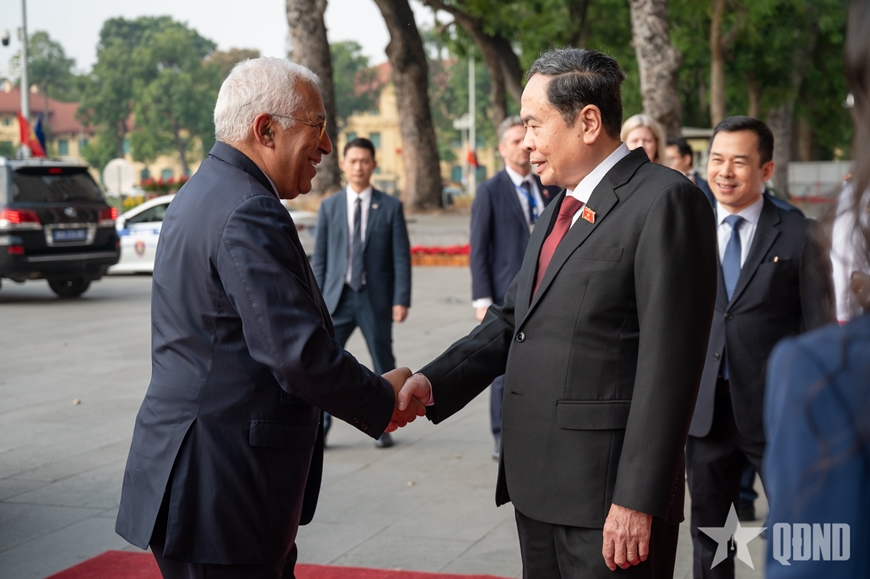 Chủ tịch Quốc hội Trần Thanh Mẫn đón Chủ tịch Hội đồng châu Âu Antonio Costa.